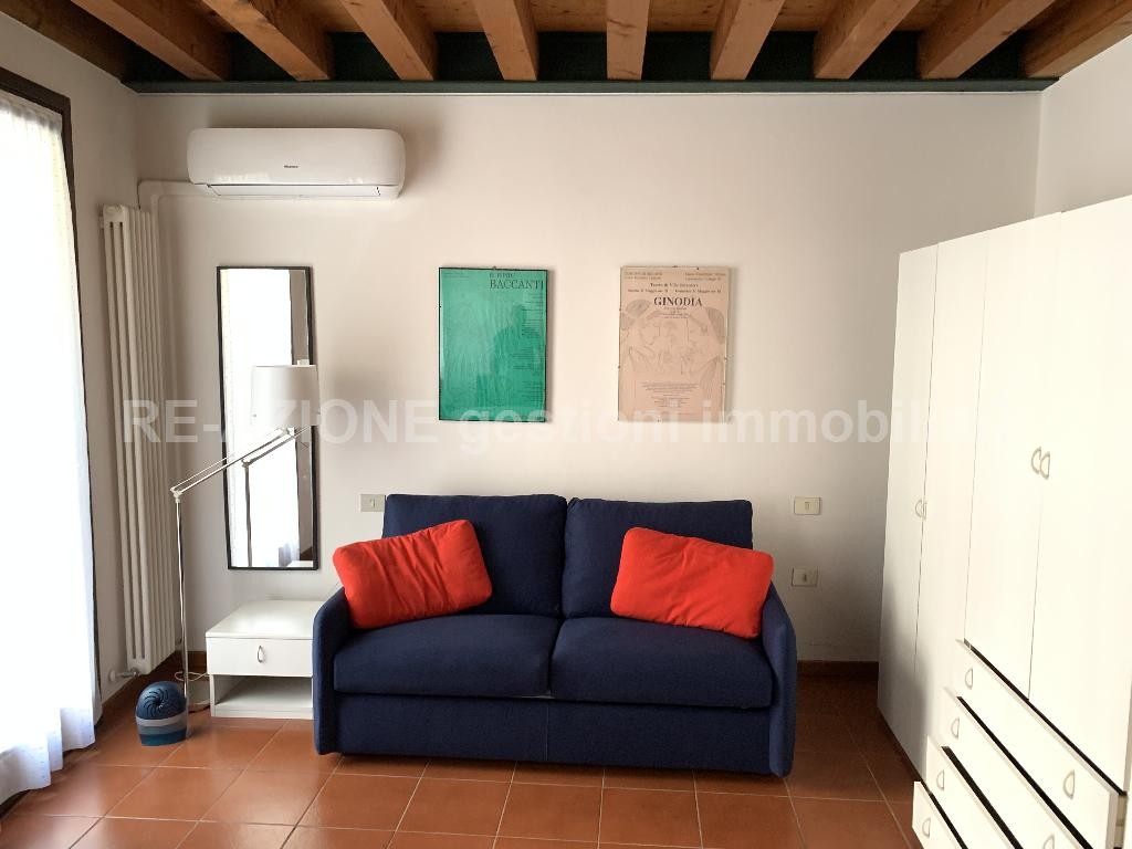 ZONA SANTA CATERINA - In palazzina dei primi del '900 ristrutturata, affittasi monolocale al piano 1°, arredato, composto da angolo cucina, zona notte con divano-letto matrimoniale e bagno: Affaccio sul cortile interno con terrazzino. Vano condominiale per parcheggio biciclette. Contesto signorile, travature in legno, luminoso. Per info: Paolo Tosato 348 3884553