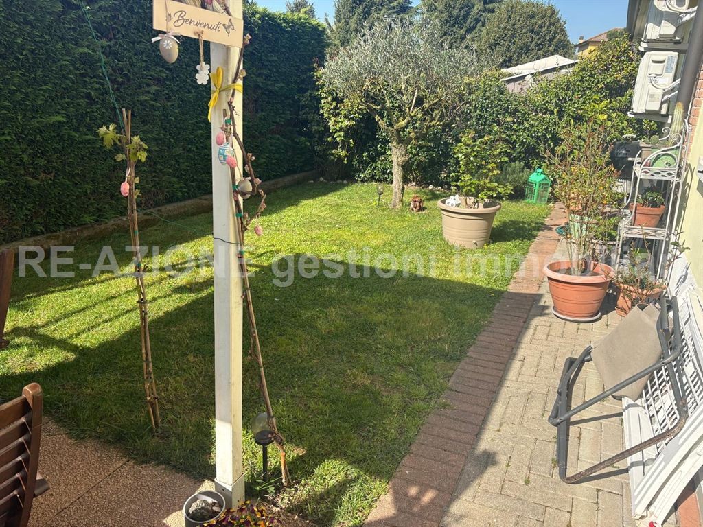 ELEGANTE UNITA' CENTRALE A SCHIERA, COMPLETAMENTE INIPENDENTE CON GIARDINO IN PROPRIETA' COSI' COMPOSTA : PIANO TERRA INGRESSO CON SOGGIORNO, CUCINA ABITABILE SEPARATA, BAGNO E ANTI BAGNO. SI PUO' ACCEDERE AL GARAGE POST0 AL PIANO TERRA ATTRAVERSO PORTA TAGLIA FUOCO, PIANO PRIMO N. 2 CAMERE SINGOLE CON BAGNO, CAMERA MATRIMONIALE CON BAGNO E TERRAZZO, PIANO INTERRATO CANTINE DI AMPIO SPAZIO DA ADIBIRE A SVARIATE COBINAZIONI. AL PIANO TERRA OLTRE AL GIARDINO, POSSIBILITA' DI SOSTA ULTERIORE AUTO .